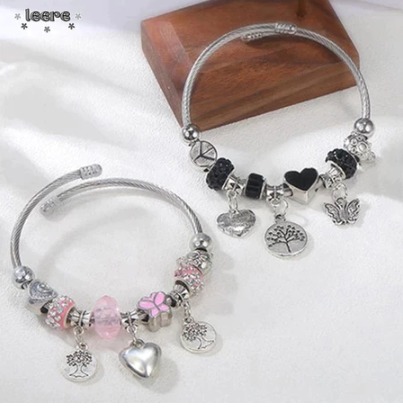 Desain Cantik: Gelang ini terdiri dari manik-manik dan liontin berbentuk hati, dengan warna penuh warna. Manik-manik berbagai bentuk dipadukan menjadi satu, menjadikannya unik dan menawan. Desain gelang memberikan kesan berlapis pada gelang, membuat pergelangan tangan ramping dan sangat halus.